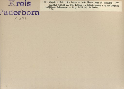 | Bestand | Bd. 3, Heft 2: Kreis Paderborn | alle Regesten |