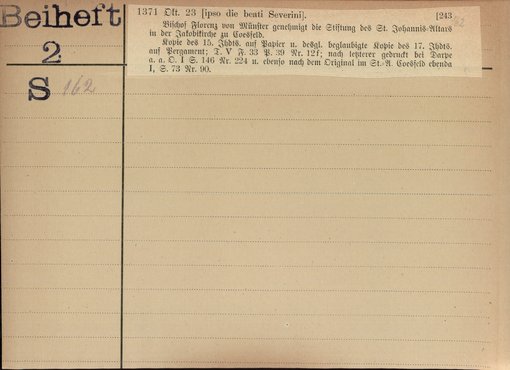 | Bestand | Beibd. 1, Heft 2: Kreis Coesfeld, Salm-Horstmar/Croy | alle Regesten |