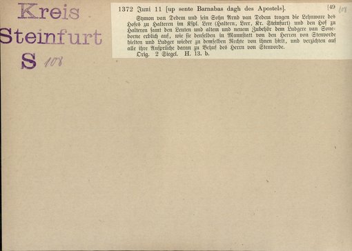 | Bestand | Bd. 1, Heft 4: Kreis Steinfurt | alle Regesten |
