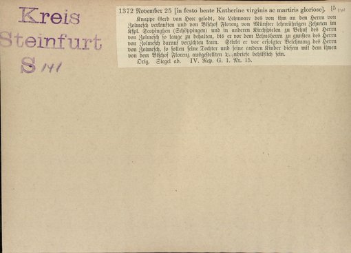 | Bestand | Bd. 1, Heft 4: Kreis Steinfurt | alle Regesten |