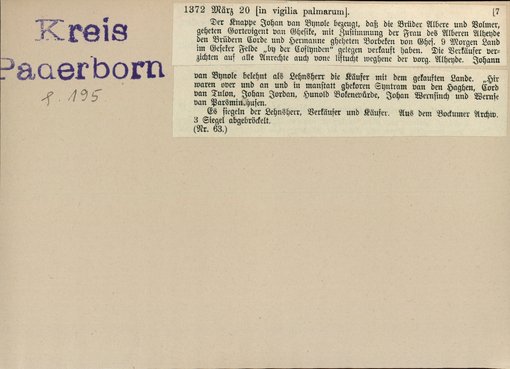 | Bestand | Bd. 3, Heft 2: Kreis Paderborn | alle Regesten |