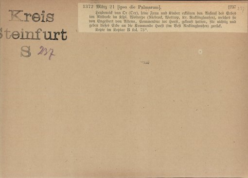 | Bestand | Bd. 1, Heft 4: Kreis Steinfurt | alle Regesten |