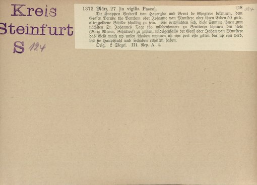 | Bestand | Bd. 1, Heft 4: Kreis Steinfurt | alle Regesten |