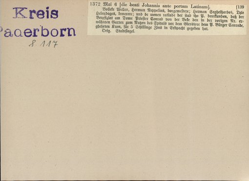 | Bestand | Bd. 3, Heft 2: Kreis Paderborn | alle Regesten |