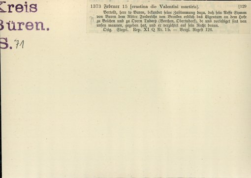 | Bestand | Bd. 3, Heft 1: Kreis Büren | alle Regesten |