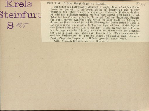 | Bestand | Bd. 1, Heft 4: Kreis Steinfurt | alle Regesten |
