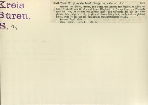 | Bestand | Bd. 3, Heft 1: Kreis Büren | alle Regesten |
