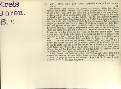 | Bestand | Bd. 3, Heft 1: Kreis Büren | alle Regesten |