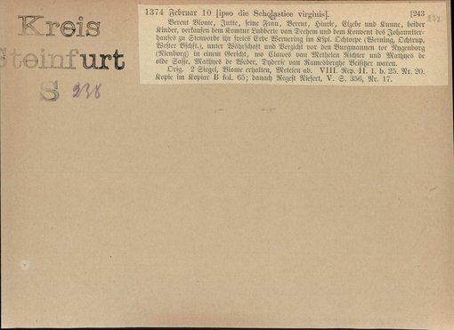 | Bestand | Bd. 1, Heft 4: Kreis Steinfurt | alle Regesten |