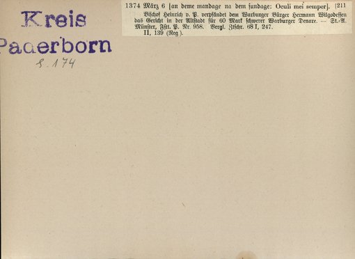 | Bestand | Bd. 3, Heft 2: Kreis Paderborn | alle Regesten |