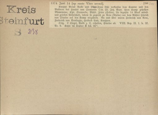 | Bestand | Bd. 1, Heft 4: Kreis Steinfurt | alle Regesten |