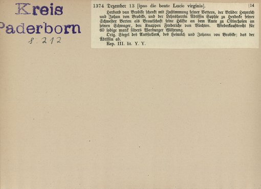 | Bestand | Bd. 3, Heft 2: Kreis Paderborn | alle Regesten |