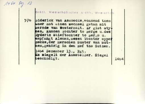 | Bestand | Westerholt-Westerholt, Urkunden | alle Regesten |