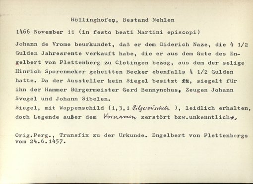| Bestand | Nehlen, Urkunden | alle Regesten |