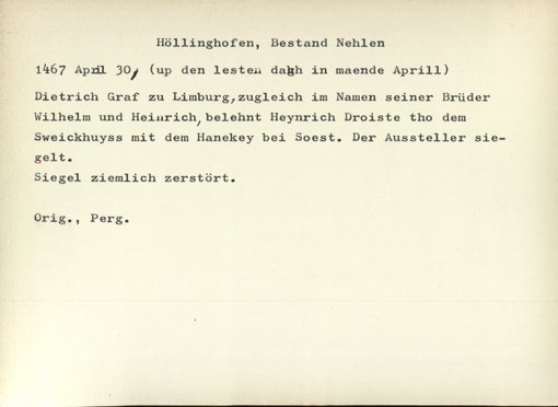 | Bestand | Nehlen, Urkunden | alle Regesten |