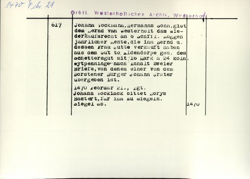 | Bestand | Westerholt-Westerholt, Urkunden | alle Regesten |