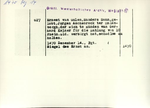 | Bestand | Westerholt-Westerholt, Urkunden | alle Regesten |