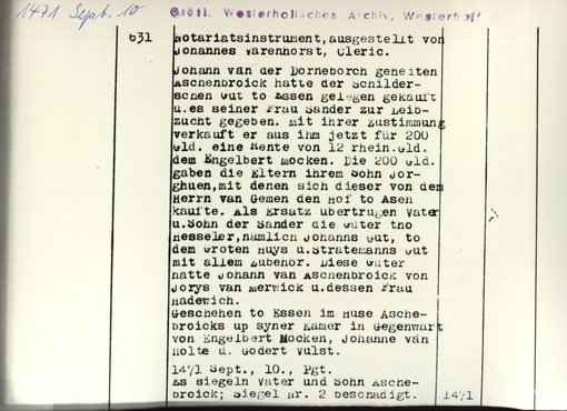 | Bestand | Westerholt-Westerholt, Urkunden | alle Regesten |