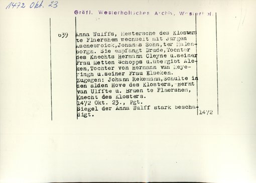 | Bestand | Westerholt-Westerholt, Urkunden | alle Regesten |