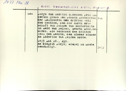 | Bestand | Westerholt-Westerholt, Urkunden | alle Regesten |