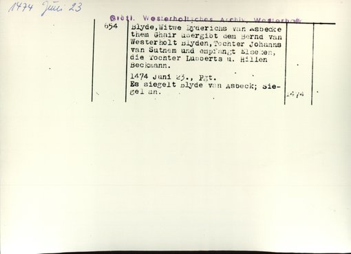 | Bestand | Westerholt-Westerholt, Urkunden | alle Regesten |