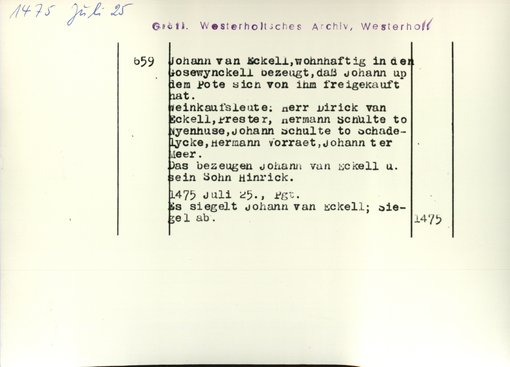 | Bestand | Westerholt-Westerholt, Urkunden | alle Regesten |