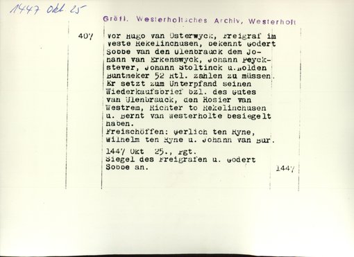 | Bestand | Westerholt-Westerholt, Urkunden | alle Regesten |