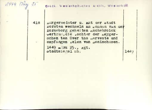 | Bestand | Westerholt-Westerholt, Urkunden | alle Regesten |
