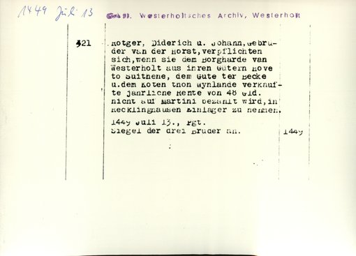 | Bestand | Westerholt-Westerholt, Urkunden | alle Regesten |