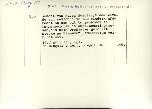 | Bestand | Westerholt-Westerholt, Urkunden | alle Regesten |