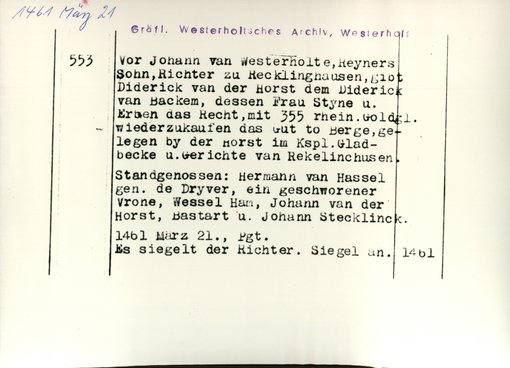 | Bestand | Westerholt-Westerholt, Urkunden | alle Regesten |