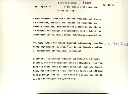 | Bestand | Bestand A, Burgsteinfurt, Urkunden | alle Regesten |