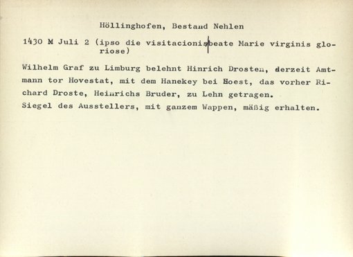 | Bestand | Nehlen, Urkunden | alle Regesten |