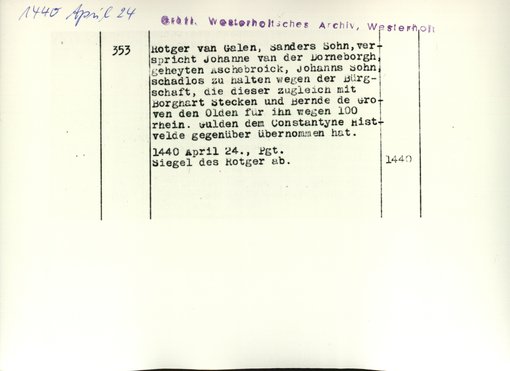 | Bestand | Westerholt-Westerholt, Urkunden | alle Regesten |