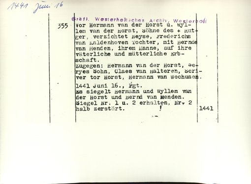 | Bestand | Westerholt-Westerholt, Urkunden | alle Regesten |