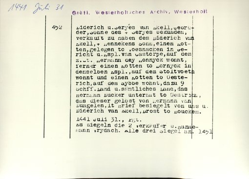| Bestand | Westerholt-Westerholt, Urkunden | alle Regesten |