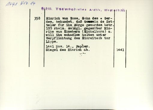 | Bestand | Westerholt-Westerholt, Urkunden | alle Regesten |