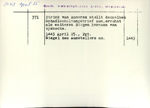 | Datum | 1443-04-25  Suche DWUD  Suche Portal | Datum Bestand:  früher