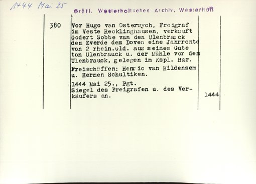 | Bestand | Westerholt-Westerholt, Urkunden | alle Regesten |