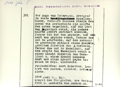 | Bestand | Westerholt-Westerholt, Urkunden | alle Regesten |