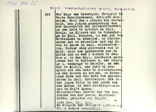 | Bestand | Westerholt-Westerholt, Urkunden | alle Regesten |