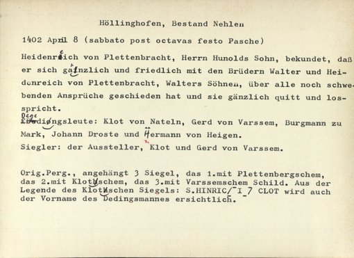 | Bestand | Nehlen, Urkunden | alle Regesten |