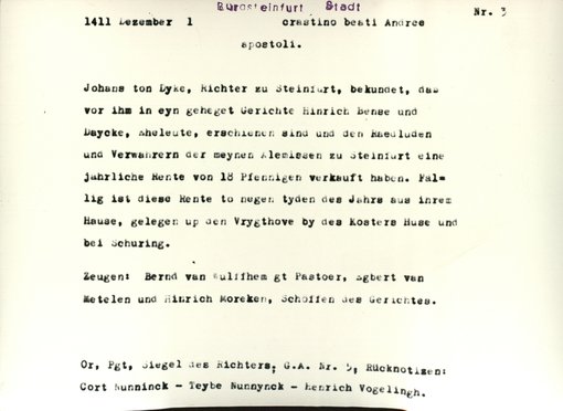 | Bestand | Bestand A, Burgsteinfurt, Urkunden | alle Regesten |