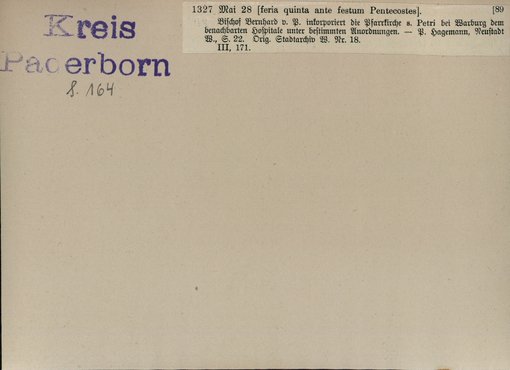 | Bestand | Bd. 3, Heft 2: Kreis Paderborn | alle Regesten |