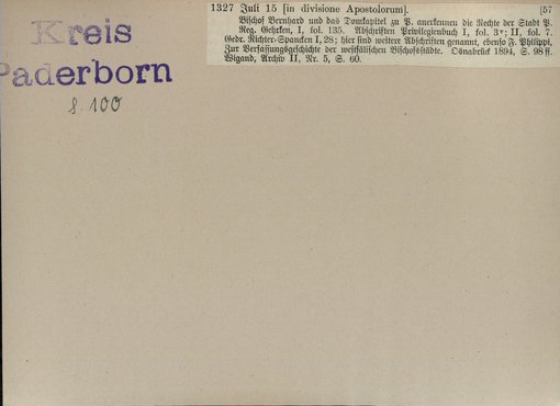 | Bestand | Bd. 3, Heft 2: Kreis Paderborn | alle Regesten |