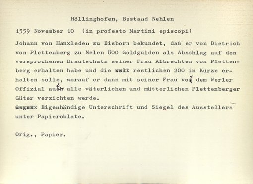 | Bestand | Nehlen, Urkunden | alle Regesten |