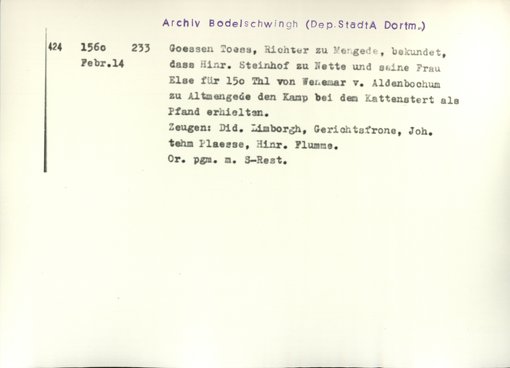 | Bestand | Bodelschwingh, Urkunden | alle Regesten |