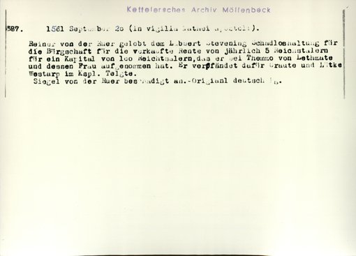 | Bestand | Möllenbeck, Haus, Urkunden | alle Regesten |
