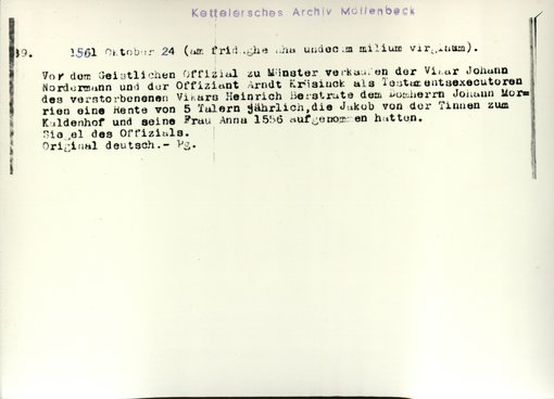 | Bestand | Möllenbeck, Haus, Urkunden | alle Regesten |