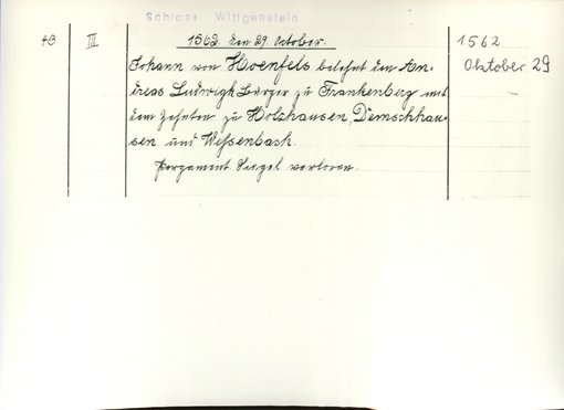 | Benutzungsort | Fürstliches Archiv zu Sayn-Wittgenstein-Hohenstein | |||||||